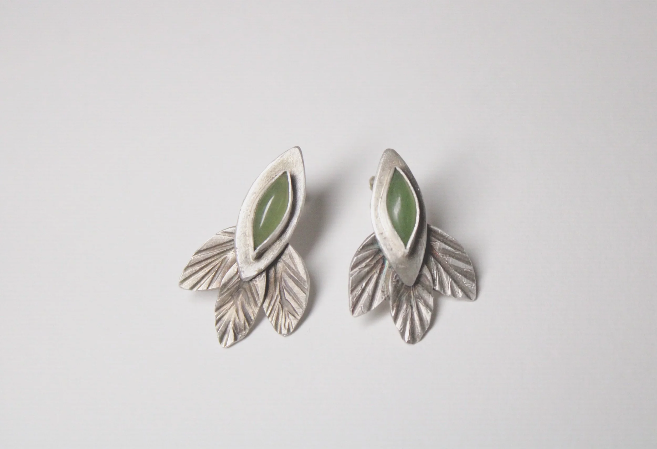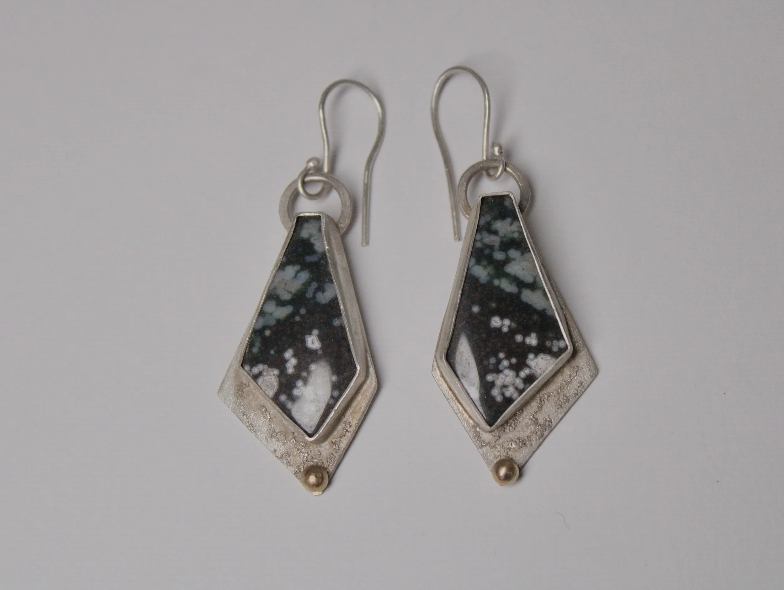 Earrings Textured Dendritic Agate Earrings - $200.00 Moonstone Stud Earrings - $100.00 Jade Leaf Earrings - $200.00 Hollow Form Moonstone Earrings - $250.00 Textured Ocean Jasper Earrings - $215.00 Raw Tourmaline Earrings - $125.00 Droplet Earrings - $125.00 Tanzanite Hollow Form Earrings - $150.00